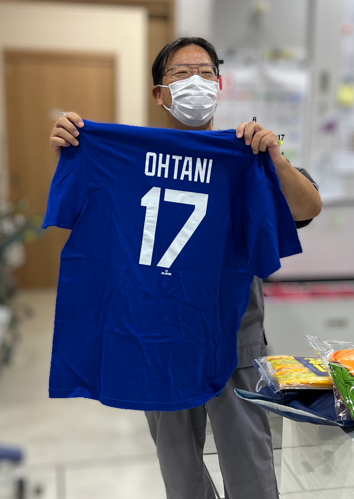 趣味のウォーキングにぴったりなアイテムと、絶賛大活躍中の大谷翔平選手の背番号が入ったユニフォームTシャツをプレゼントしました⚾